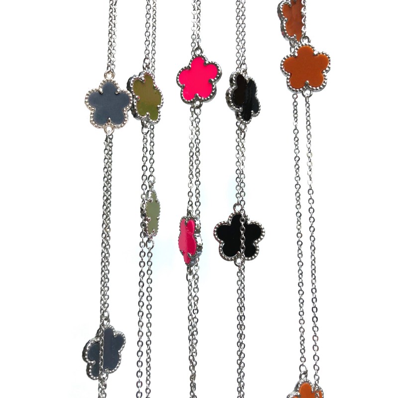 • trèfles oranges, sur chaine argentée