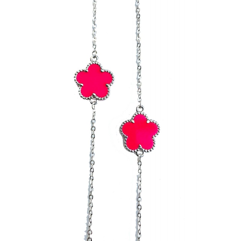 • trèfles roses fluos sur chaine argentée